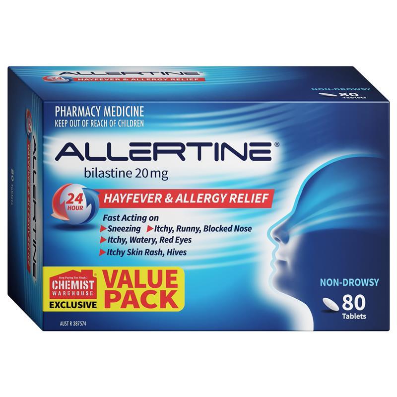 Allertine is formulated with the unique bilastine molecule. These non-drowsy tablets help you get on with your active day without the disruption of pesky symptoms of hay fever, allergies, or urticaria, including: