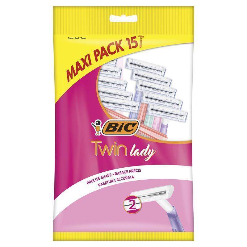 Experience timeless precision and confidence with the BIC Twin Lady women's razor, a classic since 1994, featuring two stainless steel blades, non-pivoting slim head, and a choice of 5 pastel handle colors, all crafted in BIC's European state-of-the-art facilities for dependable, quality shaving.