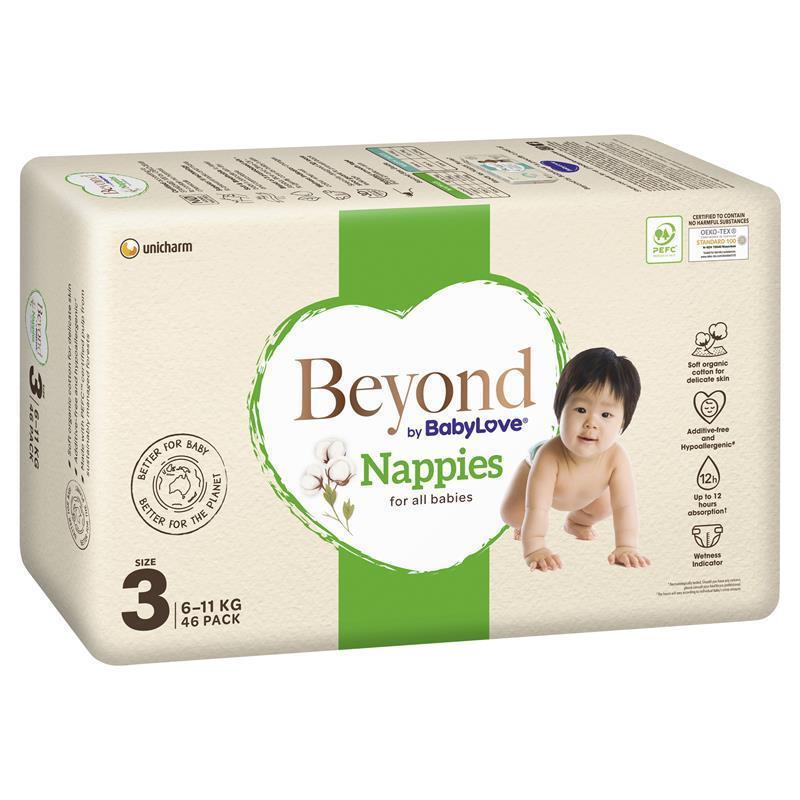Beyond by BabyLove is a nappy that ticks all the boxes; The top sheet for delicate skin is made with soft organic cotton, which is additive-free, hypoallergenic, and certified by OEKO-TEX® to contain no harmful chemicals.