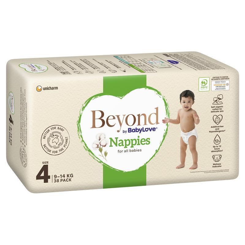 Beyond by BabyLove is a nappy that ticks all the boxes; The top sheet for delicate skin is made with soft organic cotton, which is additive-free, hypoallergenic, and certified by OEKO-TEX® to contain no harmful chemicals.