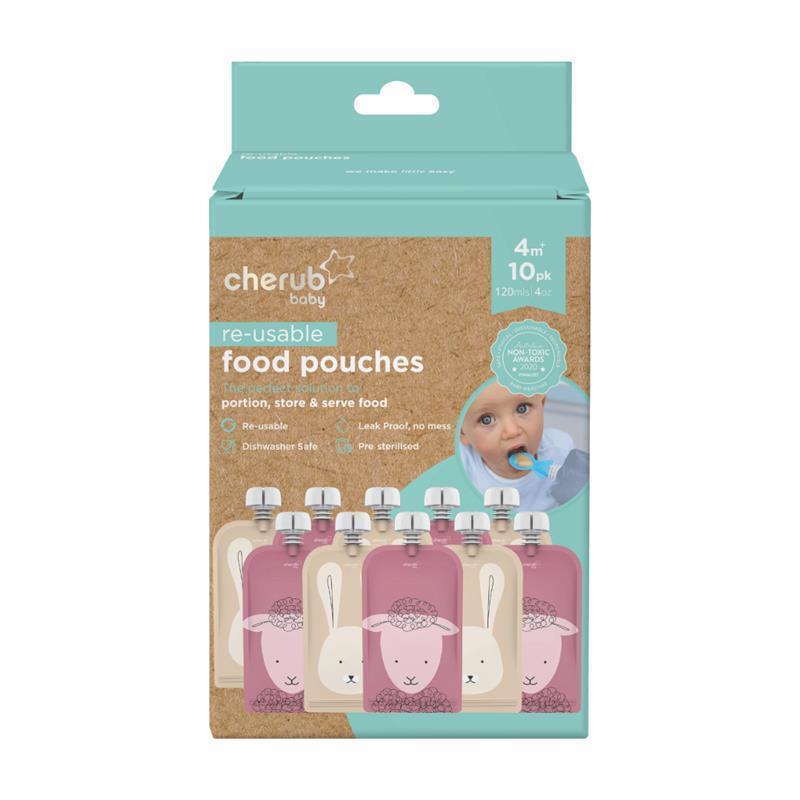 Cherub Baby’s reusable baby food pouches are an extremely portable and disposable way to store, freeze, warm, and serve homemade baby food.
