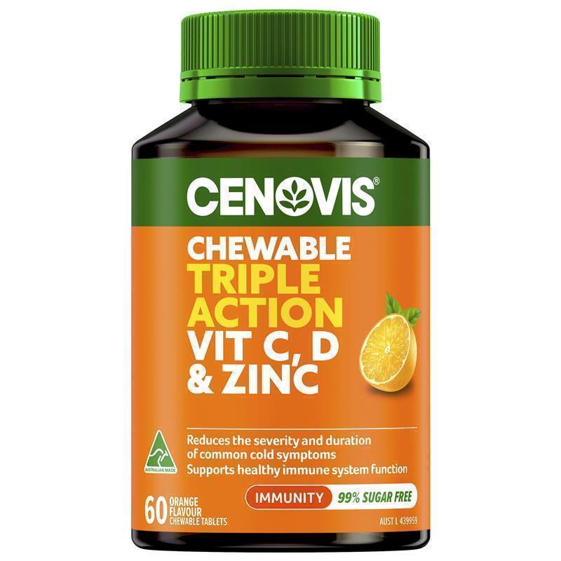 Proudly Australian Made® from Cenovis, trusted by Australian families for over 80 years, these tablets are quality tested during manufacturing to ensure product consistency and potency. Cenovis Chewable Triple Action Vit C, D & Zinc contains no added gluten, lactose, artificial colours, dairy products, or animal-derived products.