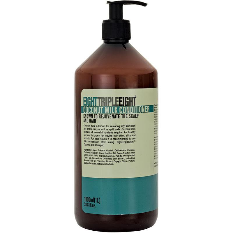 Eight Triple Eight Coconut Milk Conditioner hydrates and nourishes the hair and scalp.