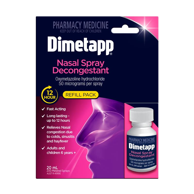 Dimetapp 12 Hour Nasal Spray helps relieve nasal congestion.