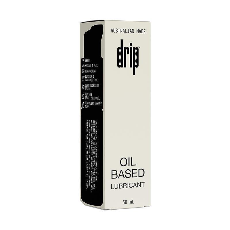 drip oil based lube has silky Australian certified organic coconut oil, hemp seed, passionfruit seed, argan and kiwi seed oils for naturally smooth massage or play.