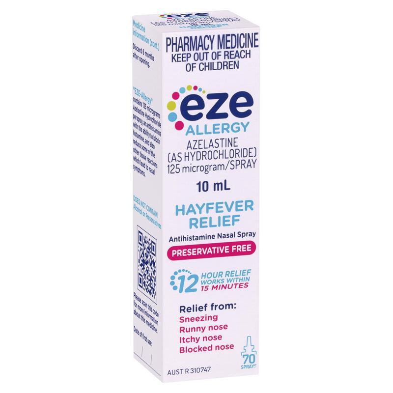 EZE Allergy Nasal Spray is a preservative-free antihistamine spray used to relieve symptoms caused by hay fever and allergies. It provides effective allergy symptom relief within 15 minutes and lasts up to 12 hours.