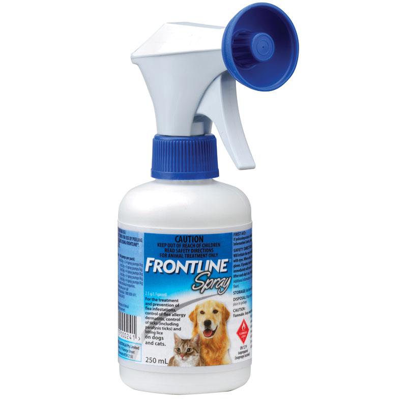 Apply Frontline Spray directly onto your pet’s coat, ensuring to cover all affected areas. Allow the spray to dry completely before allowing pets to engage in activities.