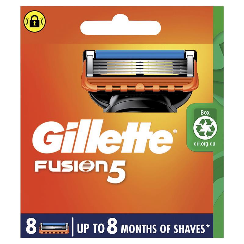 The Gillette Fusion5 men's razor blades refills feature 5 antifriction blades for a close and long lasting shave. The blades are spaced closely together for incredible comfort with a precision trimmer on the back for hard-to-reach places and for styling facial hair. Gillette Fusion5 razor blade refills fit all Gillette Fusion5 razors.