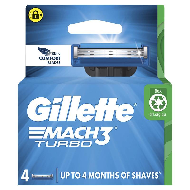 Gillette Mach3 Turbo Razor Blades for Men, 4 Count