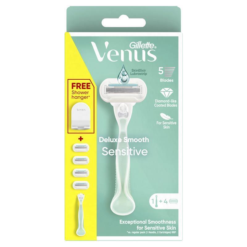 Gillette Venus Deluxe Smooth Sensitive Women's Razor Handle + 4 Blade Refills, For Sensitive Skin