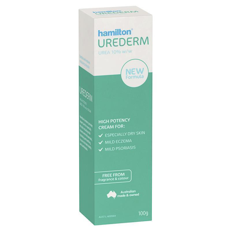 Hamilton Urederm is an intense, rich, high potency cream that soothes and restores moisture and suppleness to dry, rough, and flaking skin. Helps reduce symptoms of mild eczema/dermatitis and mild psoriasis. The 10% urea formulation rehydrates the skin and creates a protective barrier to lock in the moisture, leaving your skin feeling softened, soothed, and comfortable.