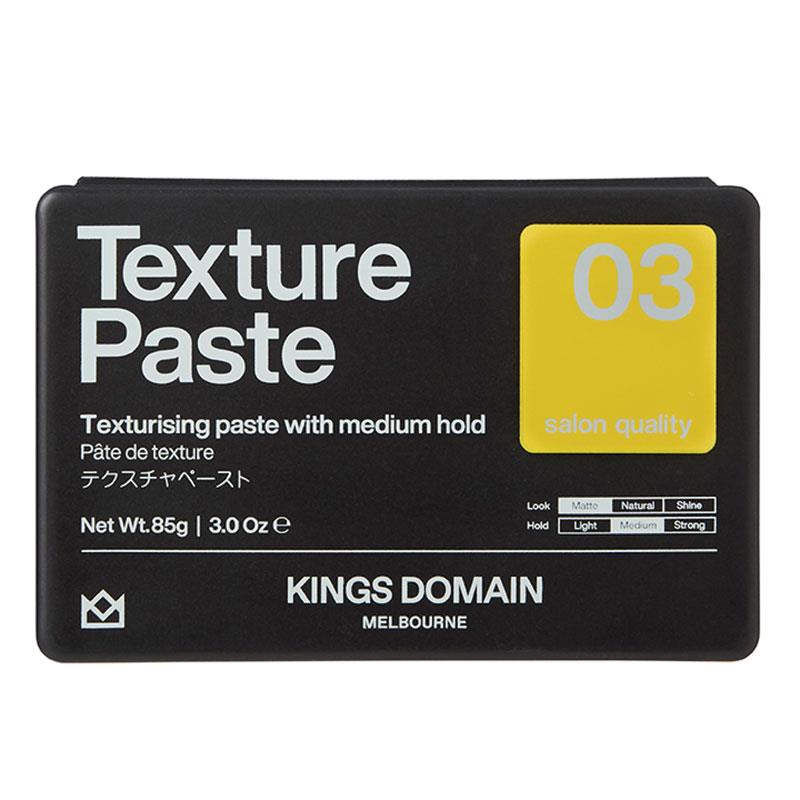 Kings Domain Texture Paste offers a flexible hold, ideal for all hair types, especially suitable for those looking to enhance their hairstyle with added texture and volume. Our paste is designed to nourish the hair while promoting scalp health.