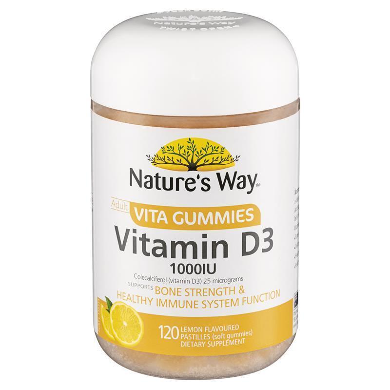 Vitamin D to support healthy immune system function. Nature's Way Adult Vita Gummies Vitamin D3 1000IU provides a daily dose of 1000IU of Vitamin D3 to support immune system function and bone health. Low levels of vitamin D3 can occur from lack of exposure to the sun or darker skin.