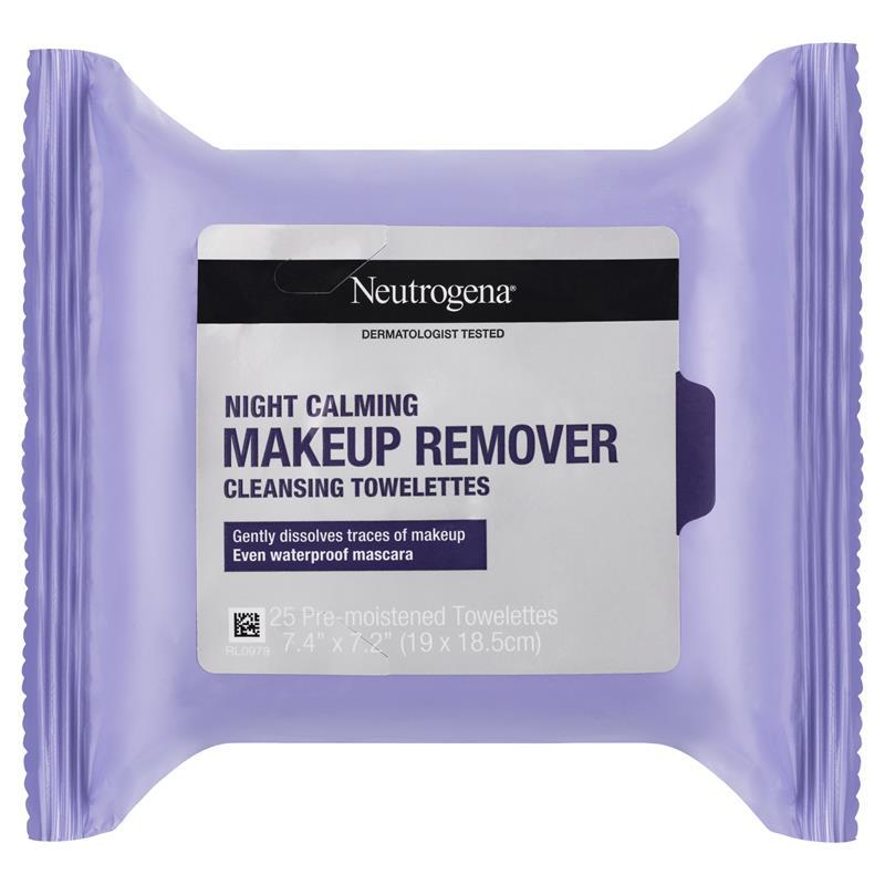 Neutrogena Makeup Remover Night Calming Cleansing Towelettes are ultra-soft cloths designed to gently dissolve all traces of makeup, even waterproof mascara.