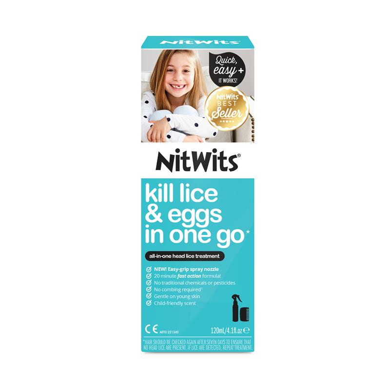 NitWits All In One Head Lice Solution is kind on kids, not so nice to nits! This sensitive formula is designed for easy application, ensuring hair is dry before spraying in sections.
