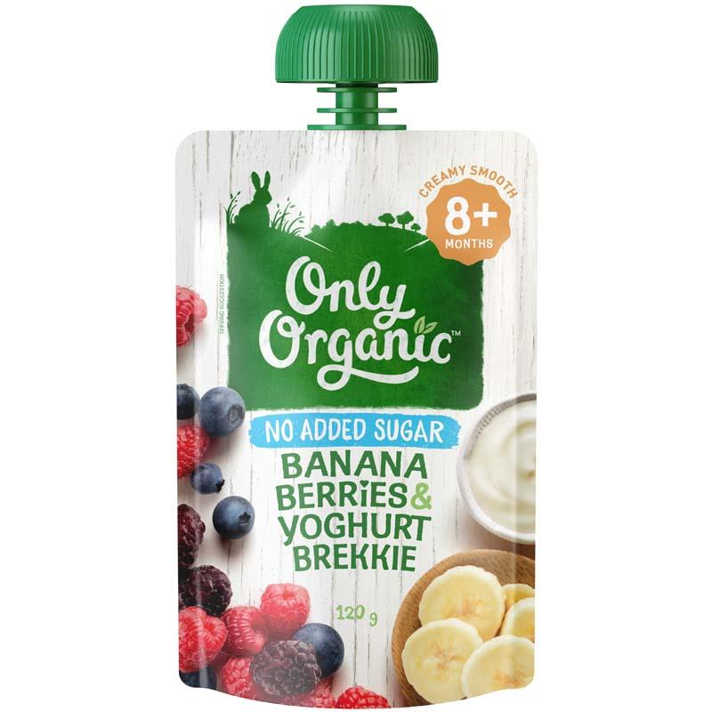 Only Organic Banana Berries Yoghurt Brekki is specially formulated for infants and toddlers.