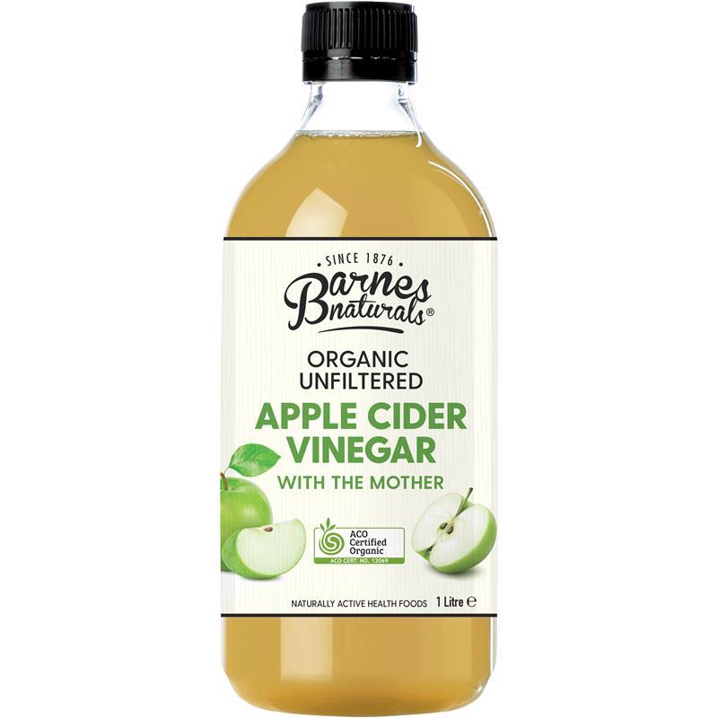 Barnes Naturals Certified Organic Apple Cider Vinegar is made with delicious cold-pressed, naturally fermented apples. Raw, unfiltered and unpasteurised, it retains the 'Mother' enzyme, a cloudy living mixture of beneficial bacteria and minerals highly regarded for its nutritional benefits and only found in authentic, premium quality vinegars.