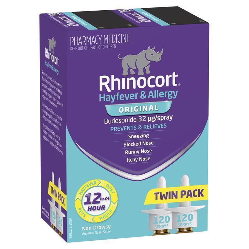 This value pack comes with 2 x 120 spray bottles of Rhinocort Original Hayfever & Allergy Non-Drowsy Nasal Spray, providing 12-24 hr relief. Non-drowsy, scent free, and alcohol free.