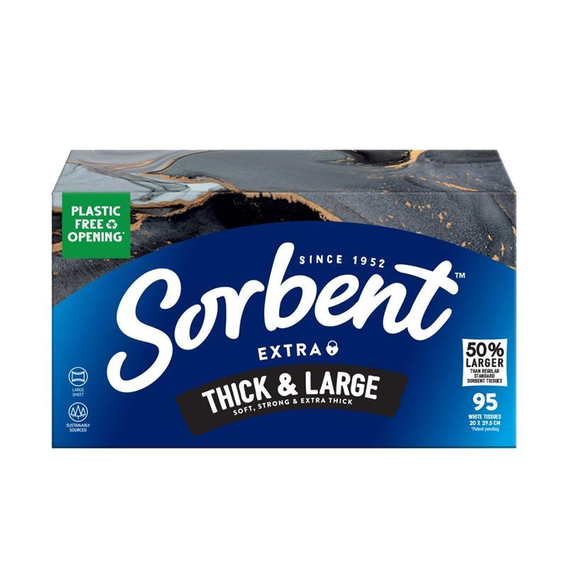 Sorbent Thick & Large Tissues are soft, strong, and extra thick for added protection.