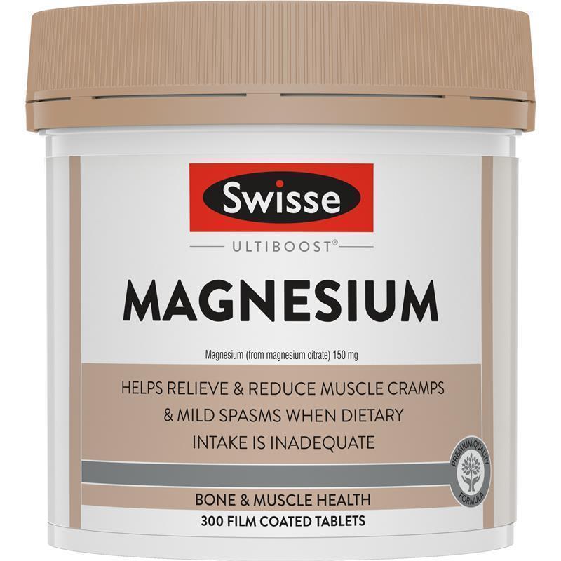 Swisse Ultiboost Magnesium supports healthy muscle function and reduces muscle cramps and spasms when dietary intake is inadequate.