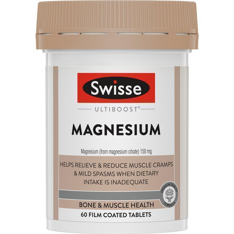 Swisse Ultiboost Magnesium supports healthy muscle function and reduces muscle cramps and spasms when dietary intake is inadequate.