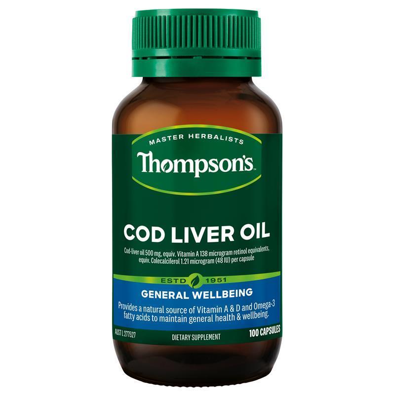 Thompson's Cod Liver Oil provides a natural source of Vitamin A & D and Omega-3 fatty acids to maintain general health & wellbeing.