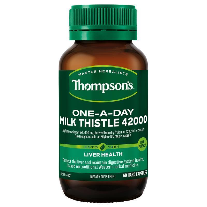 Thompson's One-A-day Milk Thistle 42000 protects the liver and maintains digestive system health, based on traditional Western herbal medicine.