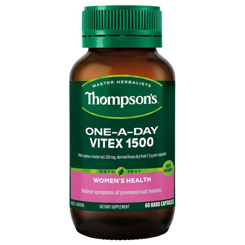 Thompson's One-A-Day Vitex 1500 relieves symptoms of premenstrual tension.