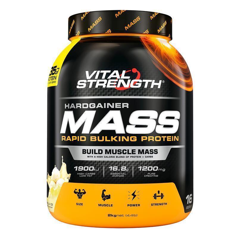 Vitalstrength Protein Blend (47%) (Instantised Whey Protein Concentrate, Skim Milk Powder, Instantised Cross Flow Microfiltered (MF) and Ultrafiltered (UF) Whey Protein Isolate) (contains concentrations of beta lactoglobulin, glycomacropeptide, alpha lactalbumin, immunoglobulin, bovine serum albumin), Maltodextrin, Dextrose Monohydrate, Fructose, Creatine Monohydrate, Glutamine, Guar Gum, Flavour, Vitamins & Minerals (Calcium Carbonate, Magnesium Oxide, Ascorbic Acid (Vit C), Iron, Zinc Lactate, Vitamin E, Sodium Molybdate, Nicotinamide (Vit B3), Chromium Chloride, Potassium Iodide, Sodium Selenite, Manganese Sulfate, Folic Acid (Vit B9), Vitamin B12, Calcium Pantothenate (Vit B5), Riboflavin (Vit B2), Vitamin A, Pyridoxine HCL (Vit B6), Biotin, Thiamine (Vit B1), Vitamin D3), Sweetener (Sucralose), [Cocoa in Chocolate Blast flavour only].