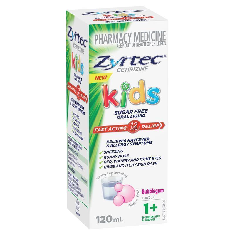 Zyrtec® Kids Allergy & Hayfever Antihistamine Oral Liquid in Bubblegum flavour provides fast-acting 12-hour relief from hayfever and allergy symptoms for children aged 1 and above.